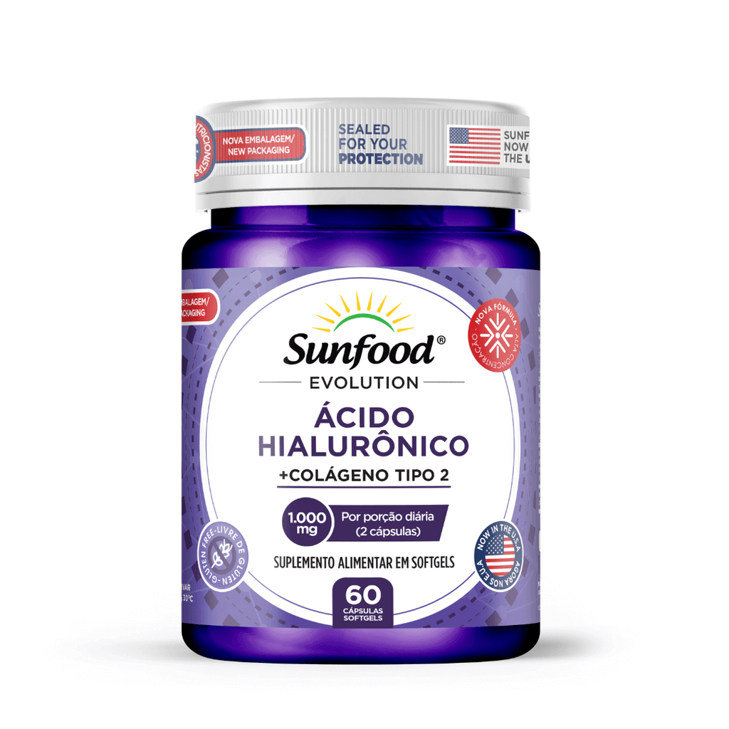 O Ácido Hialurônico + Colágeno Tipo 2 Sunfood 1000mg foi desenvolvido para quem quer cuidar do corpo de dentro para fora, com foco em mobilidade, conforto e aparência saudável.